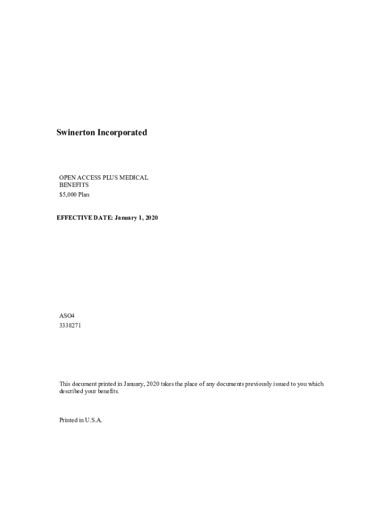 Winston IncorporatedOPEN ACCESS PLUS MEDICAL BENEFITS $5,000 Plan EFFECTIVE DATE: January 1, 2020ASO4 3338271This document printed in January 2020 takes the place of any documents previously issued