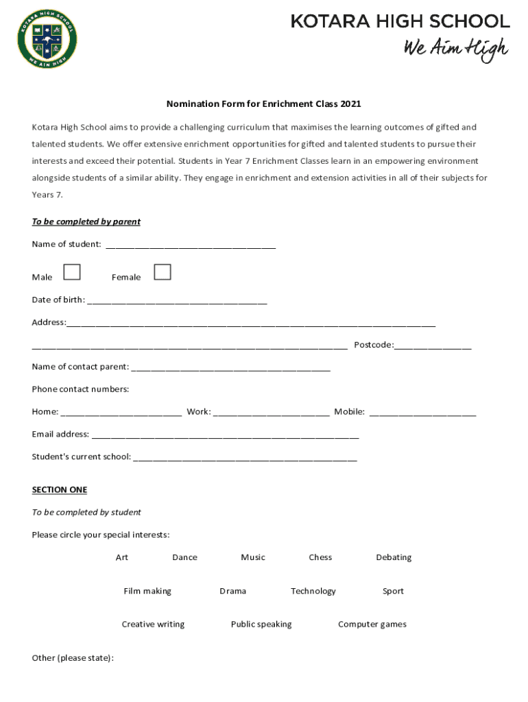 Fill out your year 7 enrichment class online with pdfFiller!