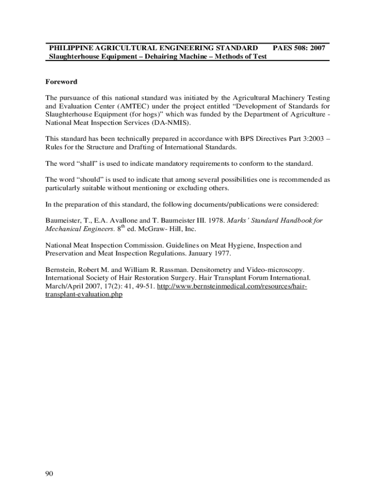 PHILIPPINE AGRICULTURAL ENGINEERING STANDARD