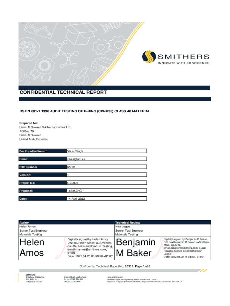 CONFIDENTIAL TECHNICAL REPORTS EN 6811:1996 AUDIT TESTING OF BRING (CPNR35) CLASS 40 MATERIALPrepared for: