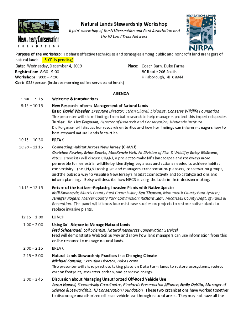 Get the free Natural Lands Stewardship Workshop - New Jersey Recreation and ...