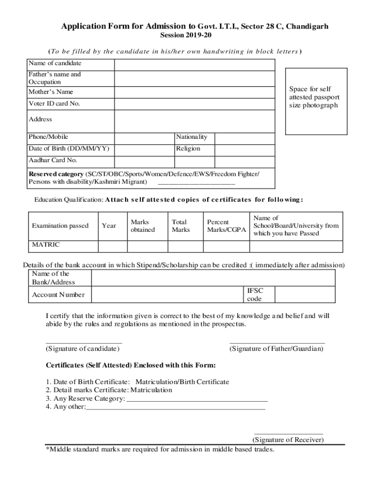 Get the free Application Form for Admission to Govt. I.T.I., Sector 28 C ...