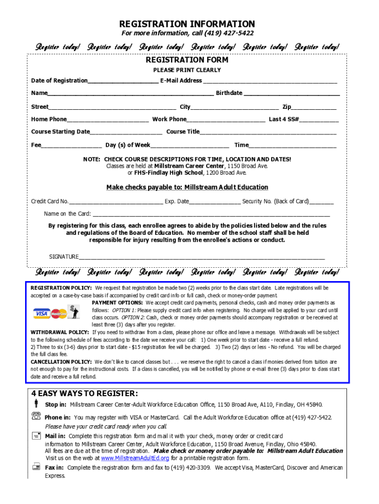 REGISTRATION INFORMATION For more information, call (419) 4275422Register today! Register today! Register today! Register today! Register today! Register today!REGISTRATION FORM PLEASE PRINT CLEARLY