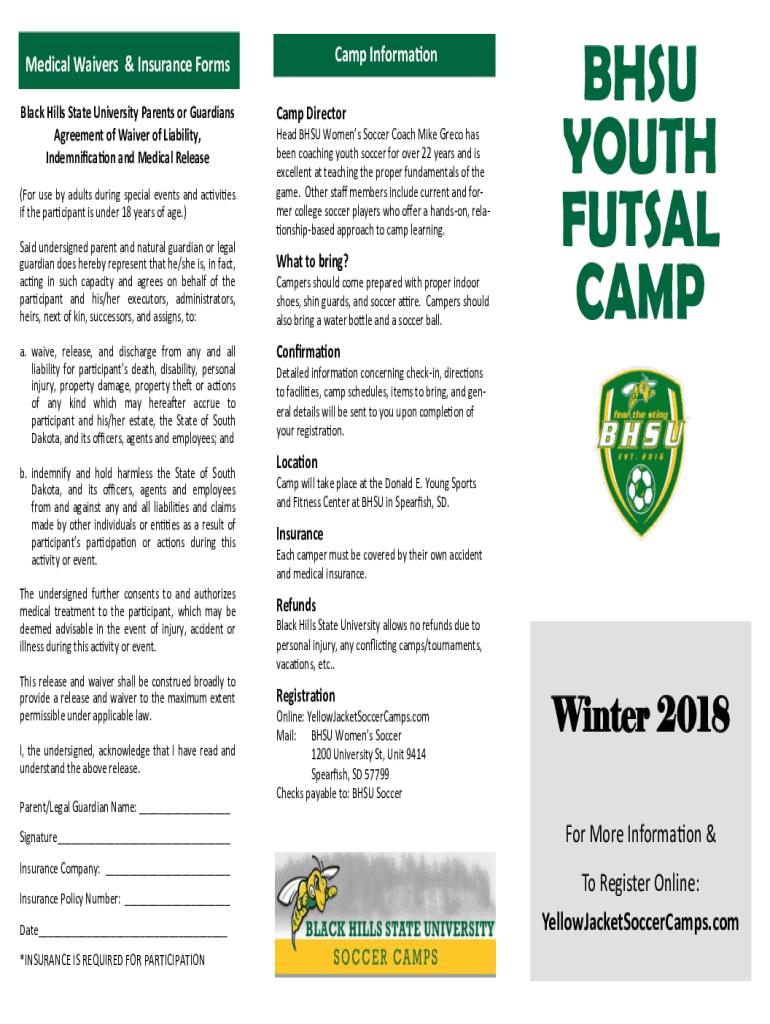 Camp InformationMedical Waivers & Insurance Forms Black Hills State University Parents or Guardians Agreement of Waiver of Liability, Indemnification and Medical Release (For use by adults during