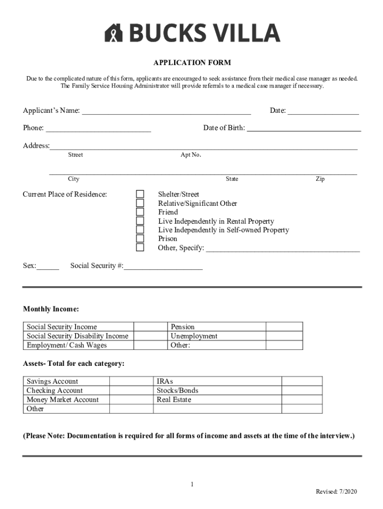 Fill out your bucks villa application 72020 online with pdfFiller!