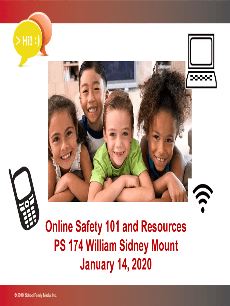 Online Safety 101 and Resources PS 174 William Sidney Mount January 14, 2020Welcome We are first generation Internet parents Our children are the first generation to be born and raised with the Internet