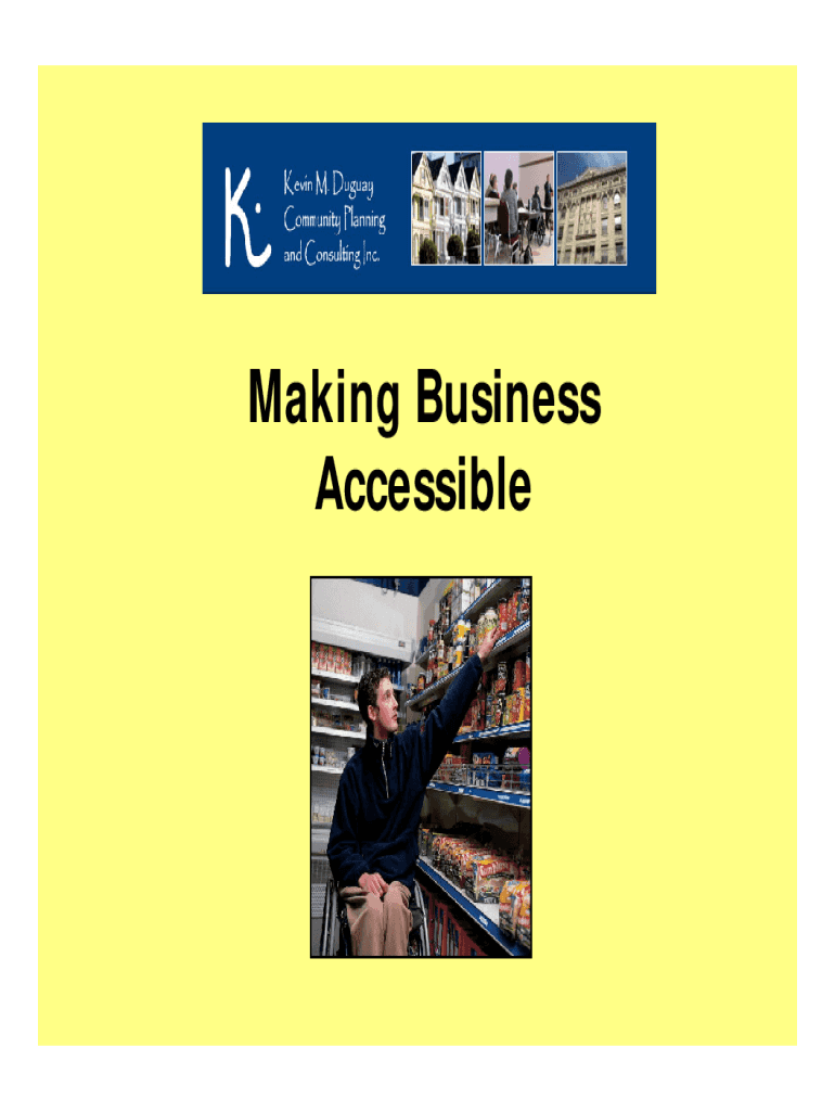 Making Business AccessibleOutline Provincial Scene Ontarian's with Disabilities Act, 2001 Accessibility for Ontarian's with Disabilities Act, 2005 Creating an Accessible Community The Basic Retail
