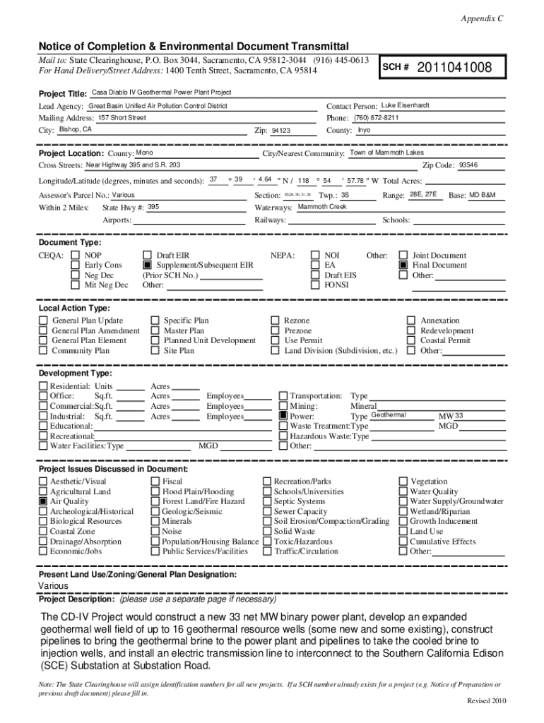 Appendix Notice of Completion & Environmental Document Transmittal