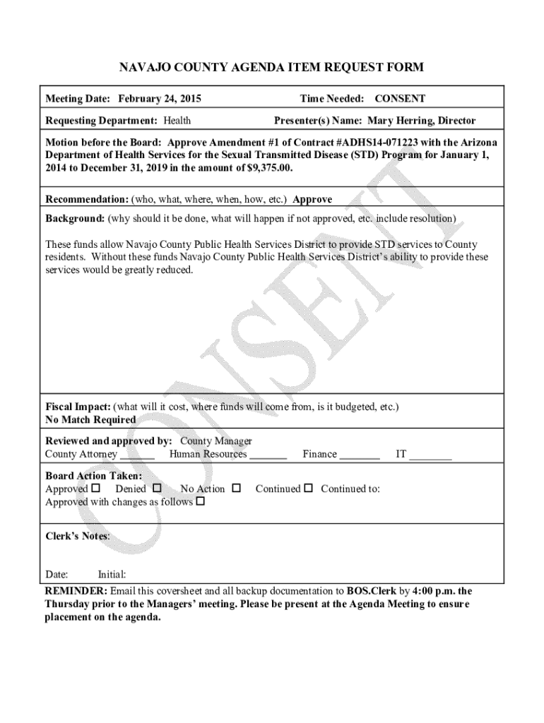 Get the free NAVAJO COUNTY AGENDA ITEM ... - Navajo County Arizona