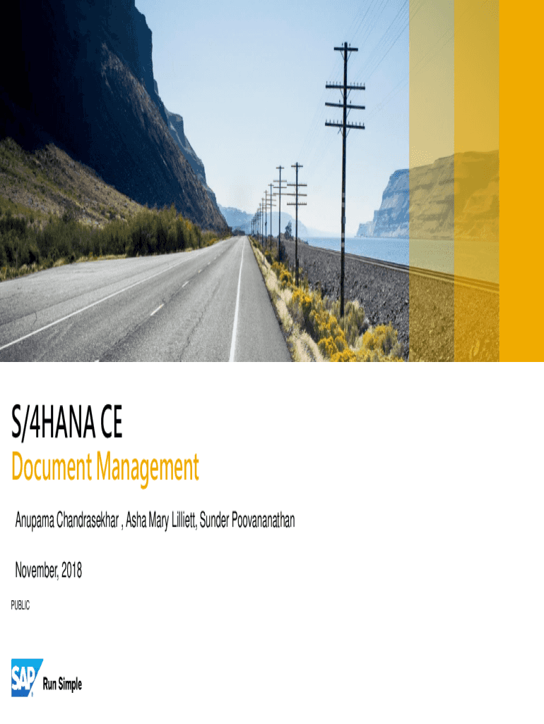 S/4HANA Document Management ANPAA Chandrasekhar, Asha Mary Lillie, Sunder Poovananathan November 2018 PUBLICDisclaimerThe information in this presentation is confidential and proprietary to SAP and