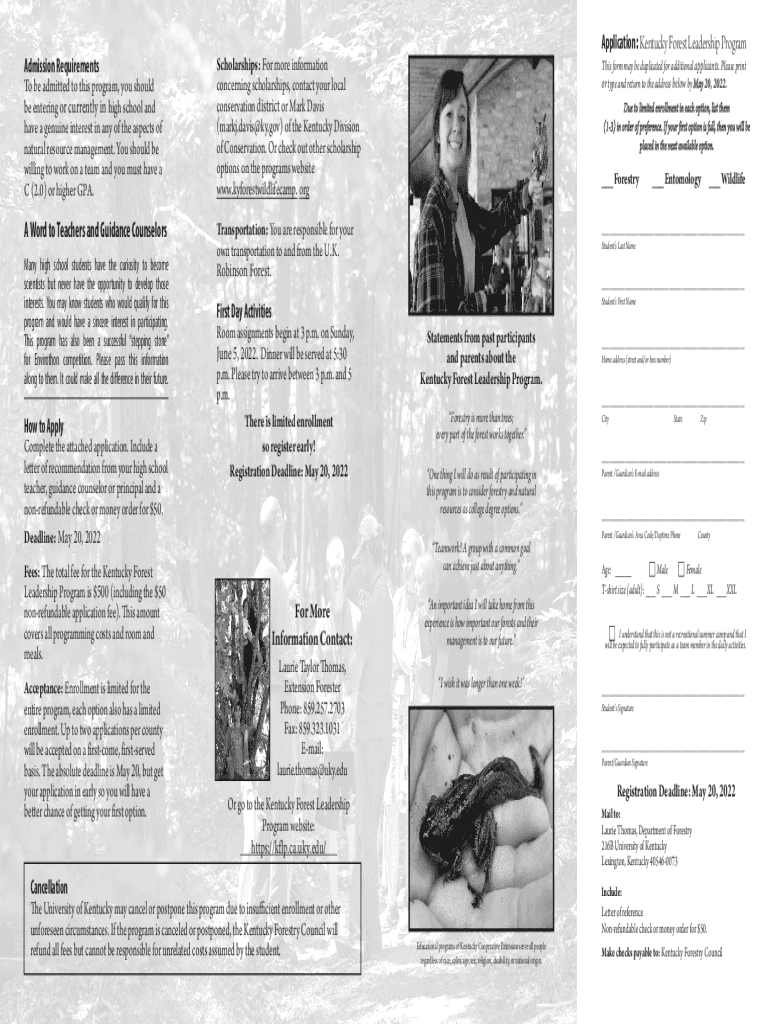 Admission Requirements be admitted to this program, you should be entering or currently in high school and have a genuine interest in any of the aspects of natural resource management. You should
