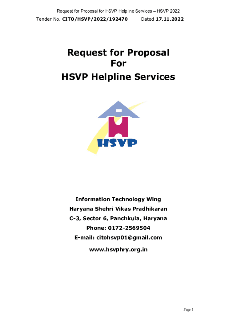 Tender No. CITY/SVP/2022/192470Dated 17.11.2022Request for Proposal