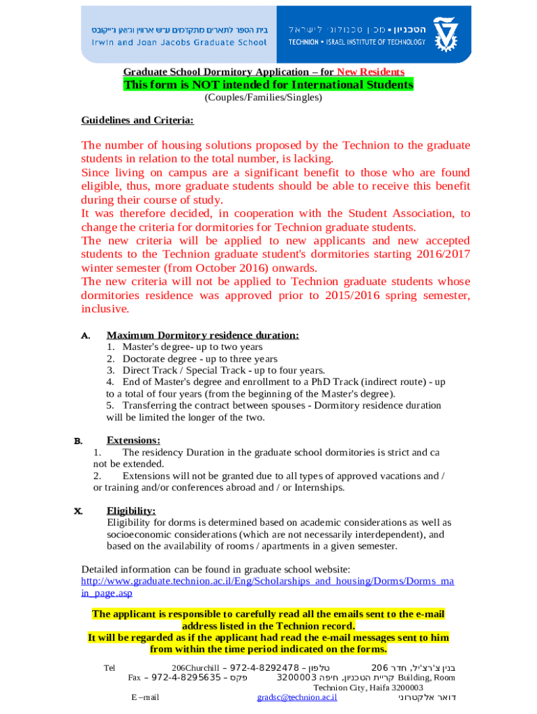 Template Eligibility to submit an application for dorm residence - graduate technion ac instructions