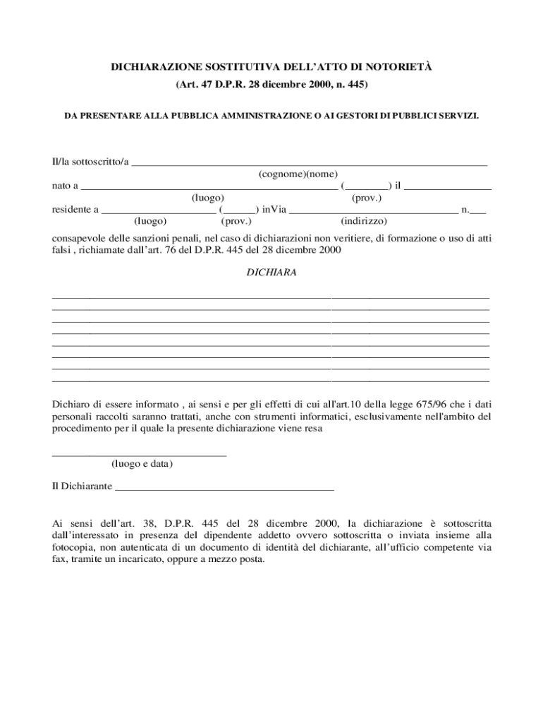 (Art. 47 D.P.R. 28 December 2000, n. 445)