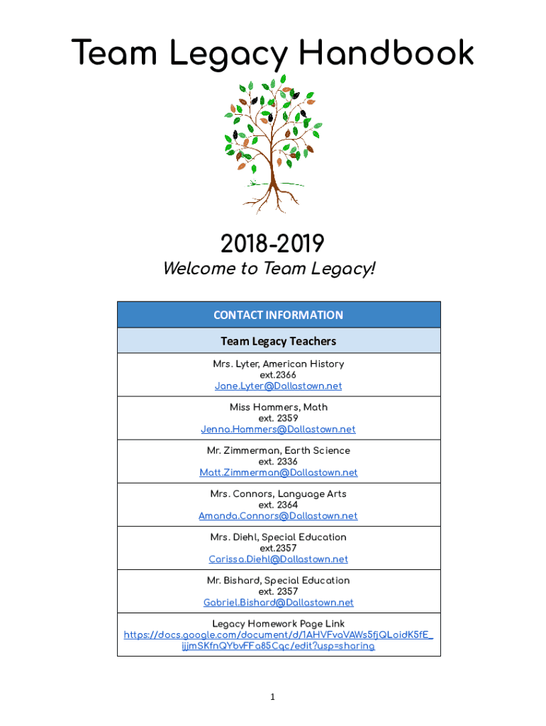 Team Legacy Handbook20182019 Welcome to Team Legacy! CONTACT INFORMATION Team Legacy Teachers Mrs. Later, American History ext.2366 Jane.Lyter@Dallastown.net Miss Hammers, Math ext. 2359 Jenna.Hammers@Dallastown.net