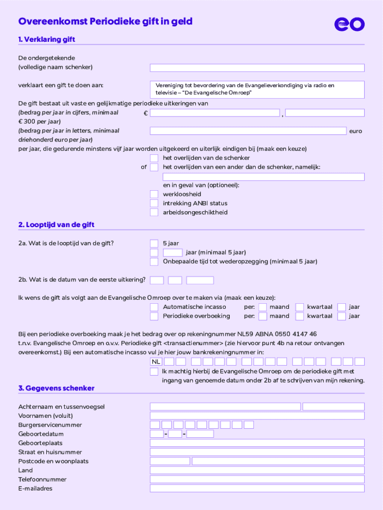 Pak de gratis Overeenkomst Periodieke gift in geld - Evangelische Omroep