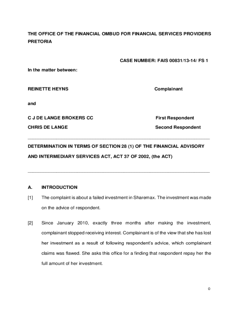 PRETORIACASE NUMBER: FANS 00831/1314/ FS 1