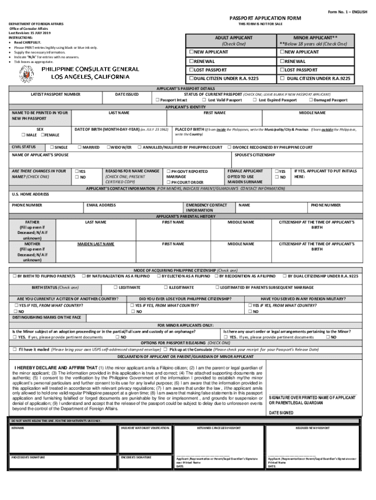 Form No. 1 ENGLISHPASSPORT APPLICATION FORM