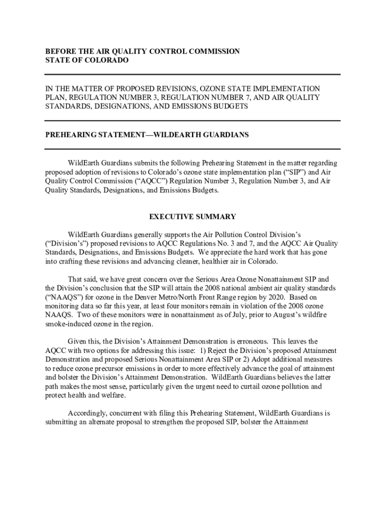 BEFORE THE AIR QUALITY CONTROL COMMISSION STATE OF COLORADOAN THE MATTER OF PROPOSED REVISIONS, OZONE STATE IMPLEMENTATION PLAN, REGULATION NUMBER 3, REGULATION NUMBER 7, AND AIR QUALITY STANDARDS,