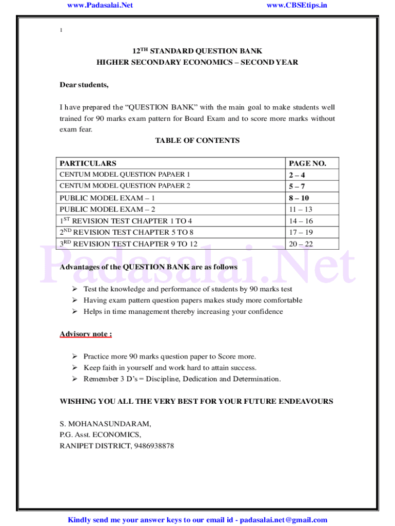 WWW. Padasalai. New. Cosmetics.in112TH STANDARD QUESTION BANK HIGHER SECONDARY ECONOMICS SECOND YEAR Dear students, I have prepared the QUESTION BANK with the main goal to make students well-trained