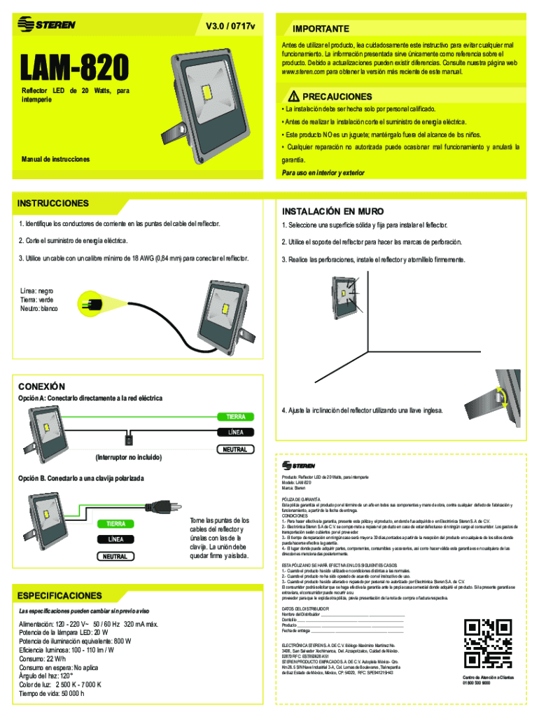 V3.0 / 0717vIMPORTANTE Antes DE utilize rel product, lea cuidadosamente ester instructive para Evita qualifier MAL funcionamiento. La information presented serve ligament Como reference sober El product.