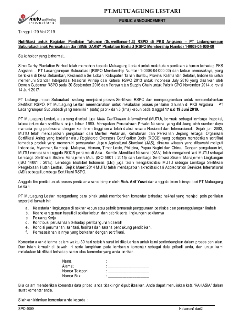 Notifies untuck Keaton Penilaian Hunan (Surveillance1.3) RPO di PKS Angina PT Ladangrumpun