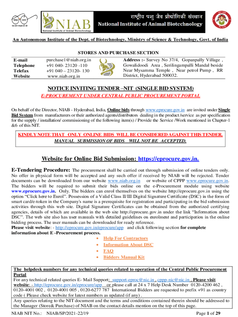 Get the free NOTICE INVITING TENDER NIT (SINGLE BID SYSTEM)