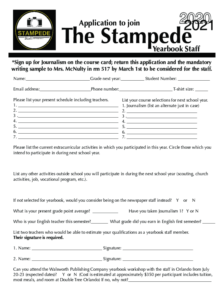 2021Application to joint StampedeYearbook Staff×Sign up for Journalism on the course card; return this application and the mandatory