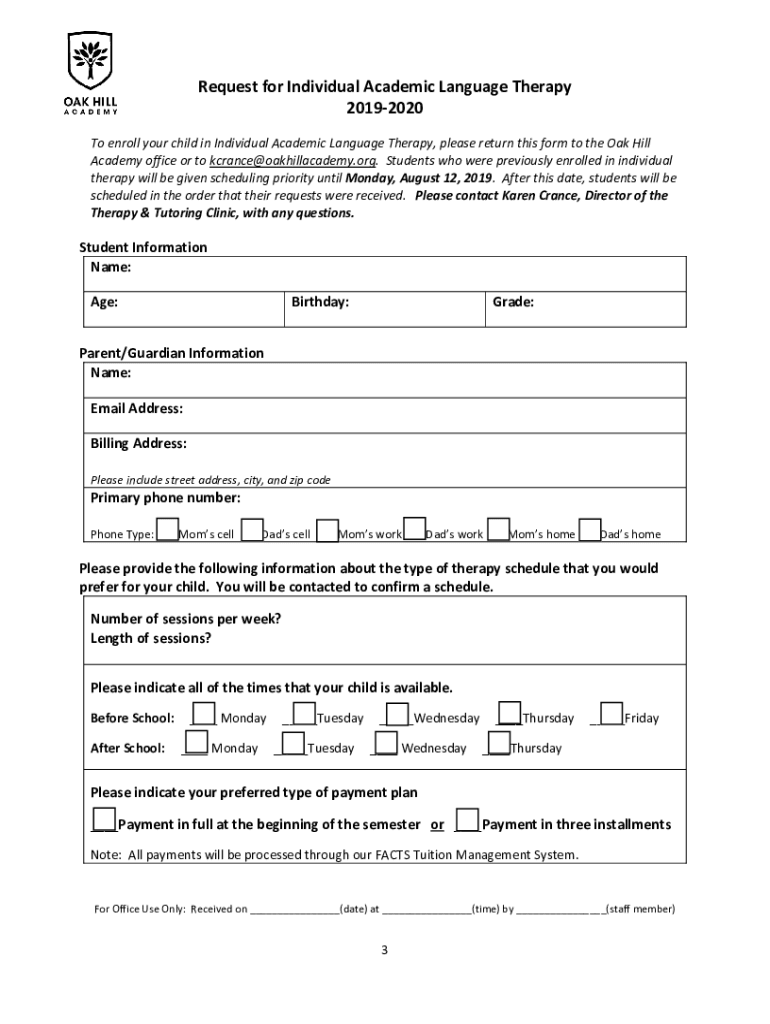 Individual Academic Language Therapy 20192020 Oak Hill Academies Therapy & Tutoring Clinic provides individual Academic Language Therapy for Oak Hill students as well as children and adolescents from
