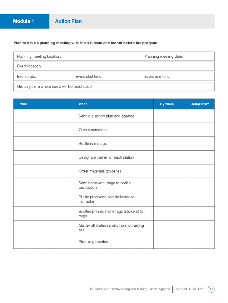 ILS Module 1: Handwashing and Making Luncheon Incidence Outreach 702 W. Kalamazoo St. Lansing, MI 48915 www.mdelio.orgUpdated 09.16.2020Module 1Table of Concentration Plan01Agenda02Grocery List05Materials