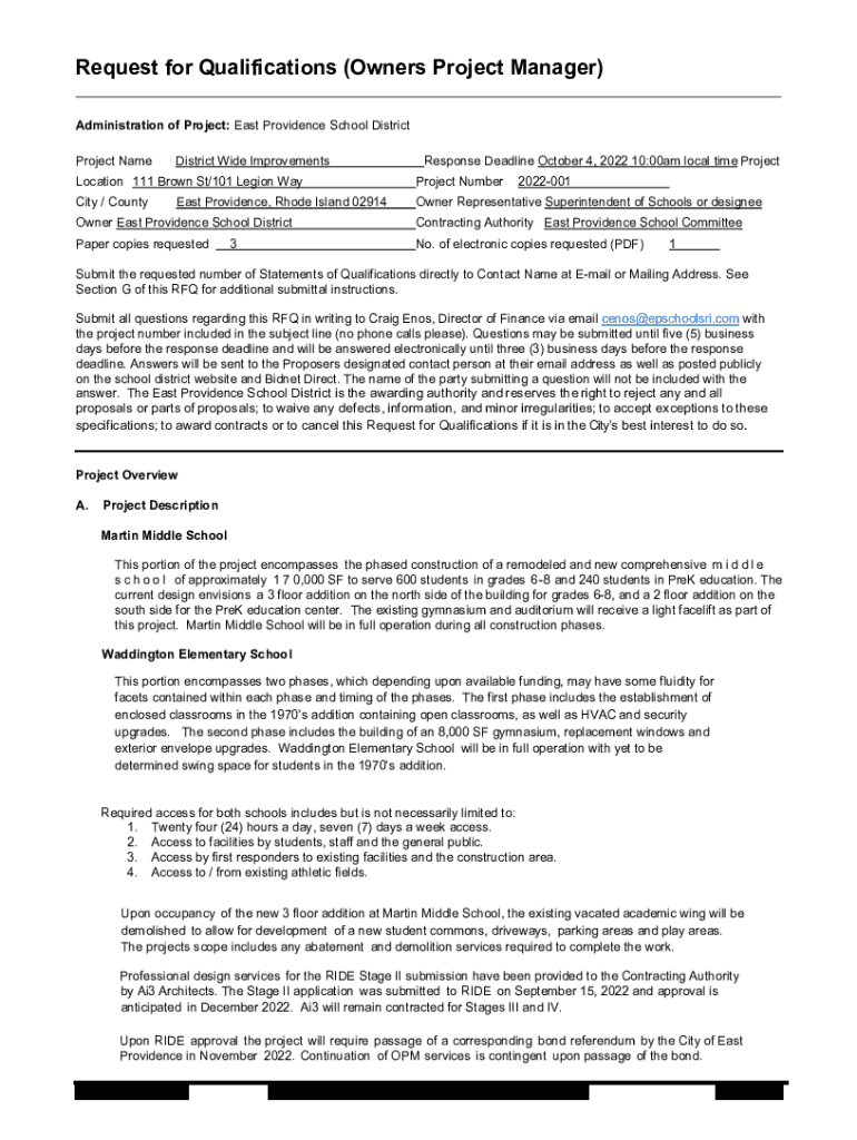 Project Redistrict Wide ImprovementsResponse Deadline October 4, 2022 10:00am local time