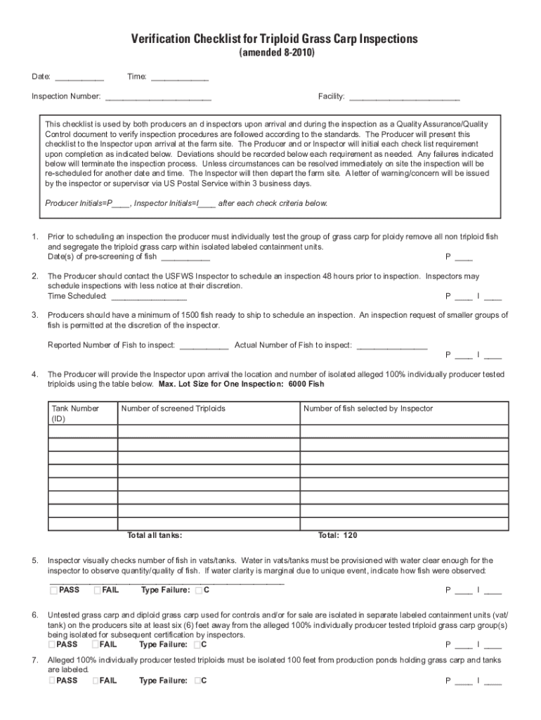 Get the free Verifiction Checklist for Triploid Grass Carp Inspections (amended 8 ...