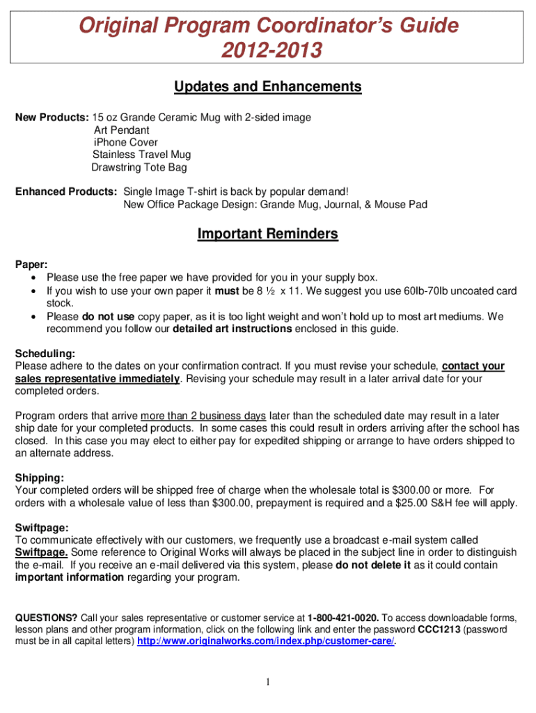 Original Program Coordinators Guide 20122013 Updates and Enhancements New Products: 15 oz Grande Ceramic Mug with 2sided image Art Pendant iPhone Cover Stainless Travel Mug Drawstring Tote Bag Enhanced