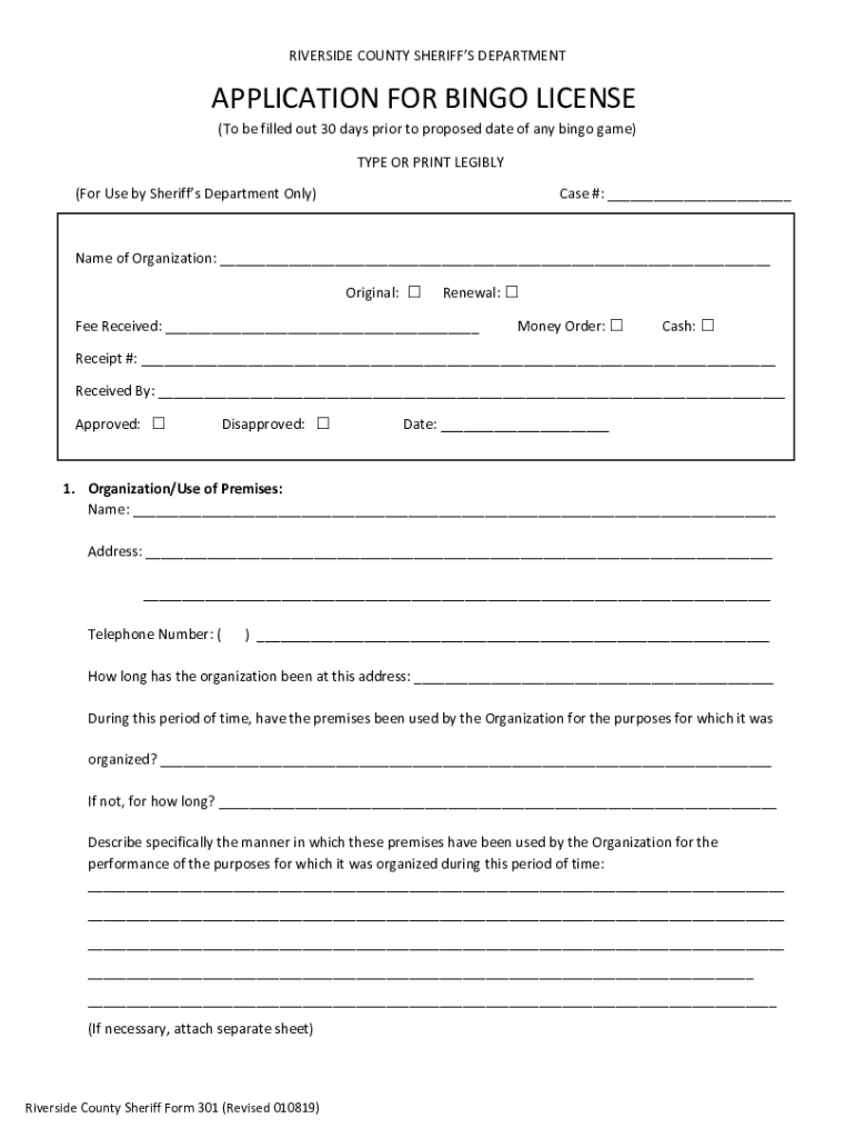 Get the free Bingo Business License Packet - Riverside County Sheriff