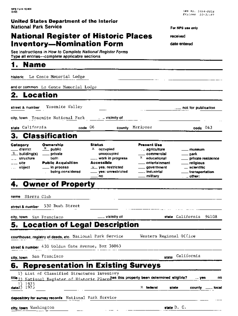 National Park ServiceNow NPS use onlyNational Register of Historic Places