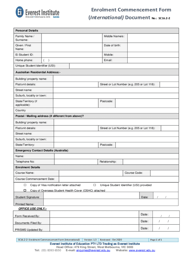 Edit your enrolment commencement form international form online