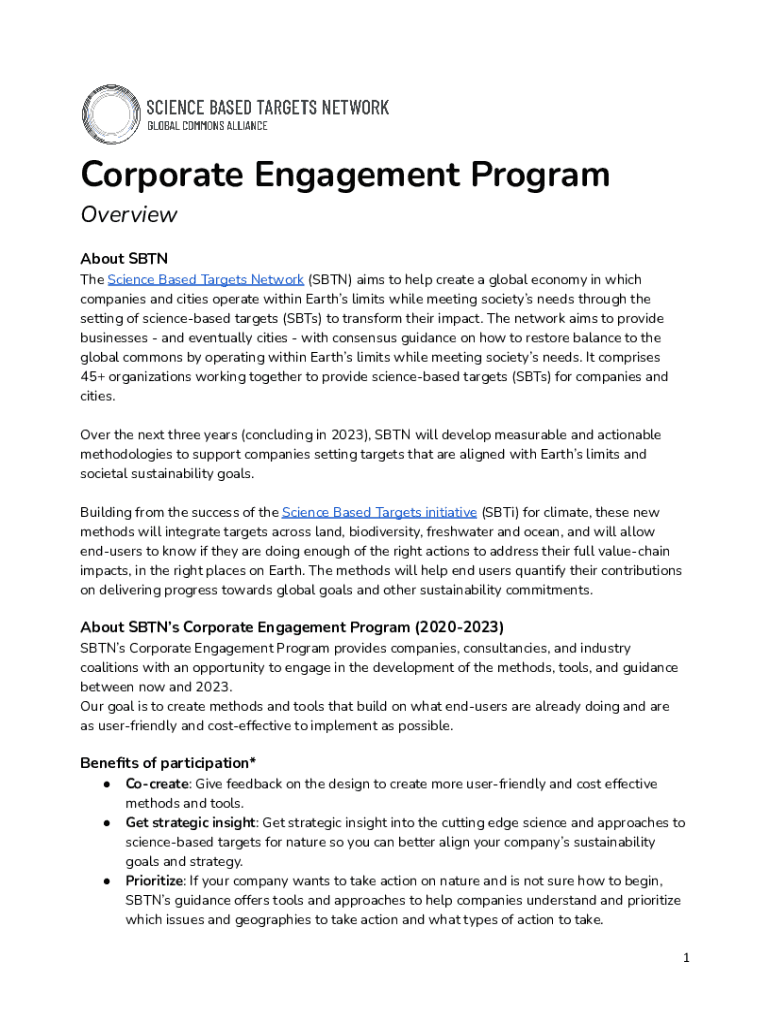 Corporate Engagement Program Overview About State Science Based Targets Network (SBT) aims to help create a global economy in which companies and cities operate within Earths limits while meeting