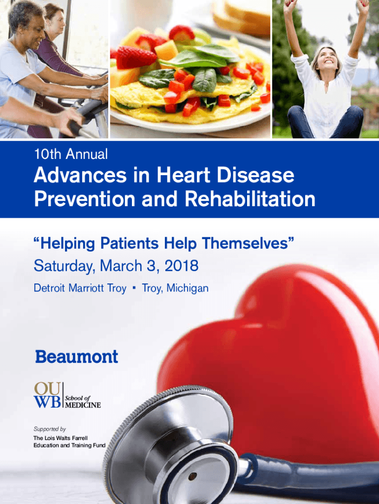 10th AnnualAdvances in Heart Disease Prevention and Rehabilitation Helping Patients Help Themselves Saturday, March 3, 2018, Detroit Marriott Troy, MichiganSupported by The Lois Walt's Farrell Education