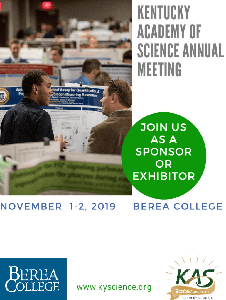 KENTUCKY ACADEMY OF SCIENCE ANNUAL MEETINGJOIN US AS A SPONSOR OR EXHIBITOR NOVEMBER 12, 2019, BERET College.science. Kentucky ACADEMY OF SCIENCE ANNUAL MEETINGNOVEMBER 12, 2019 AT BERET COLLEGE Hundreds