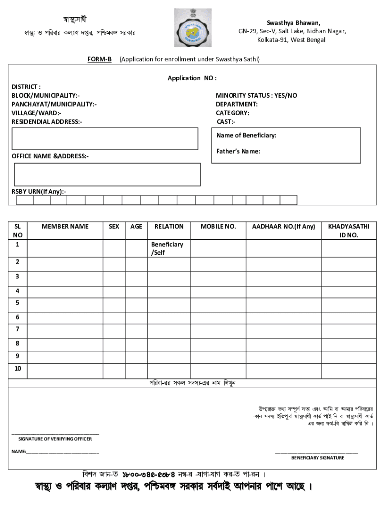 All residents of West Bengal are required to file Swasthya Sathi form fill to avail the benefits of the scheme.