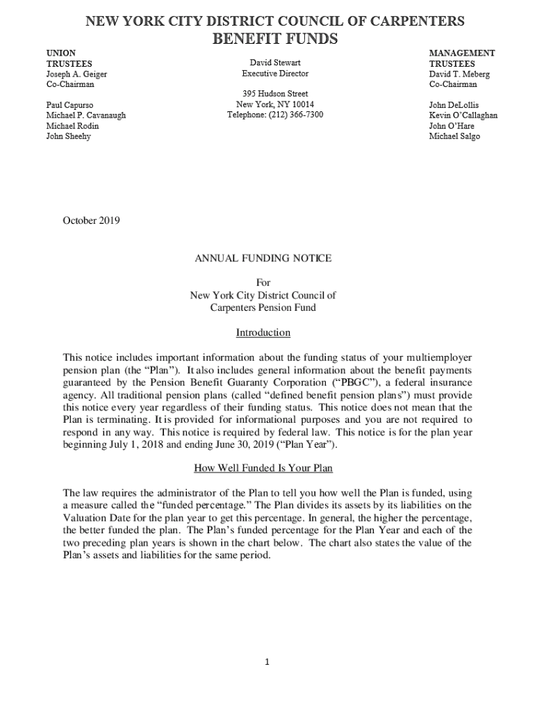 NAME ADDRESS CITY, STATE ZIP October 2019ANNUAL FUNDING NOTICE For New York City District Council of Carpenters Pensions Fund Introduction This notice includes important information about the funding