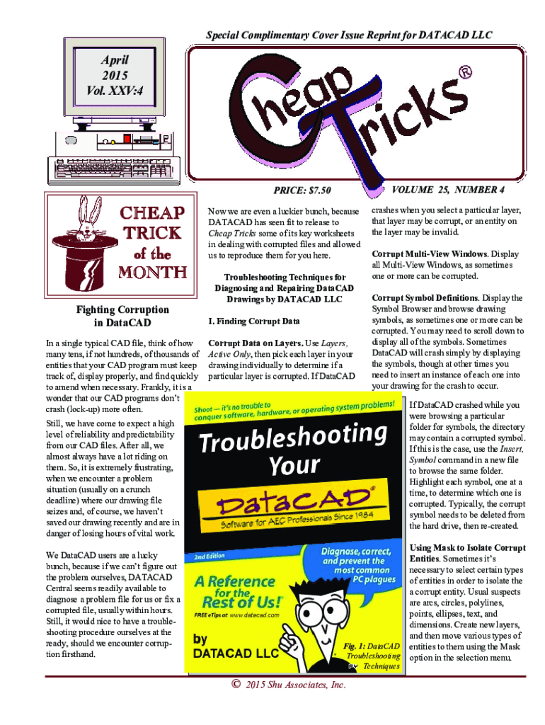 Special Complimentary Cover Issue Reprint for DATA CAD LLC April 2015 Vol. XXV:4VOLUME 25, NUMBER 4PRICE: $7.50CHEAP TRICK of the MONTH Fighting Corruption in Data CAD In a single typical CAD file,