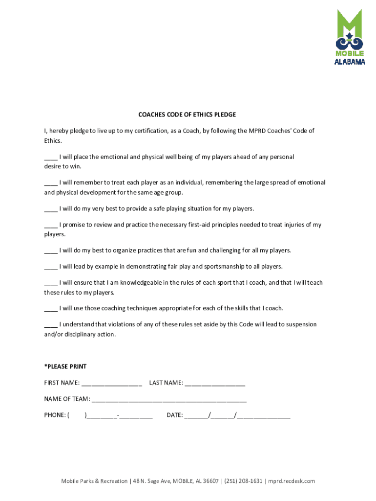 How to fill out coachs code of conduct