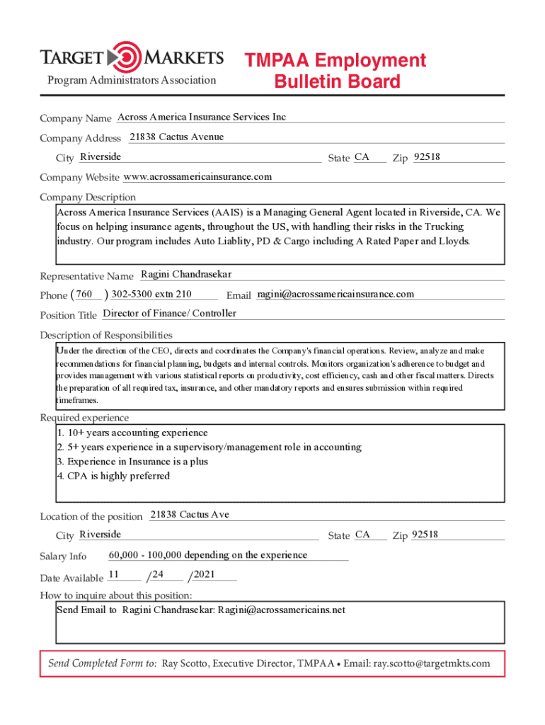 Bulletin BoardProgram Administrators AssociationCompany Name Across America Insurance Services Inc