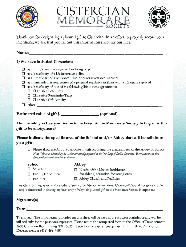 How to fill out memorare form 2020indd