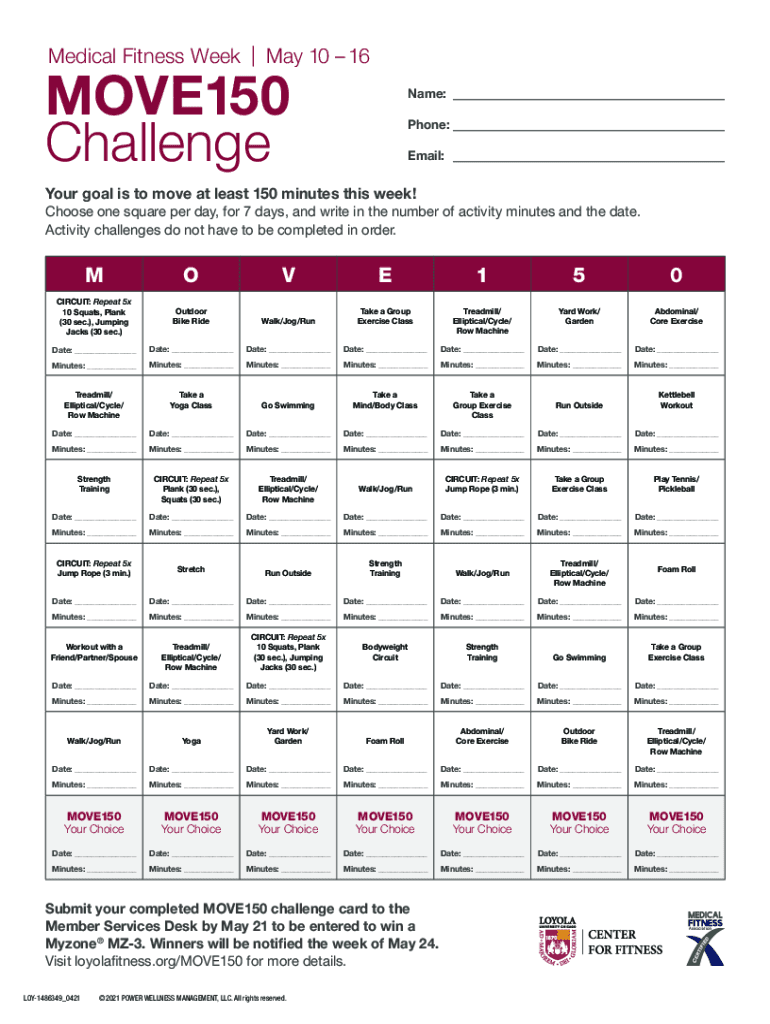 ChallengeName:Phone:Email:Your goal is to move at least 150 minutes this week!