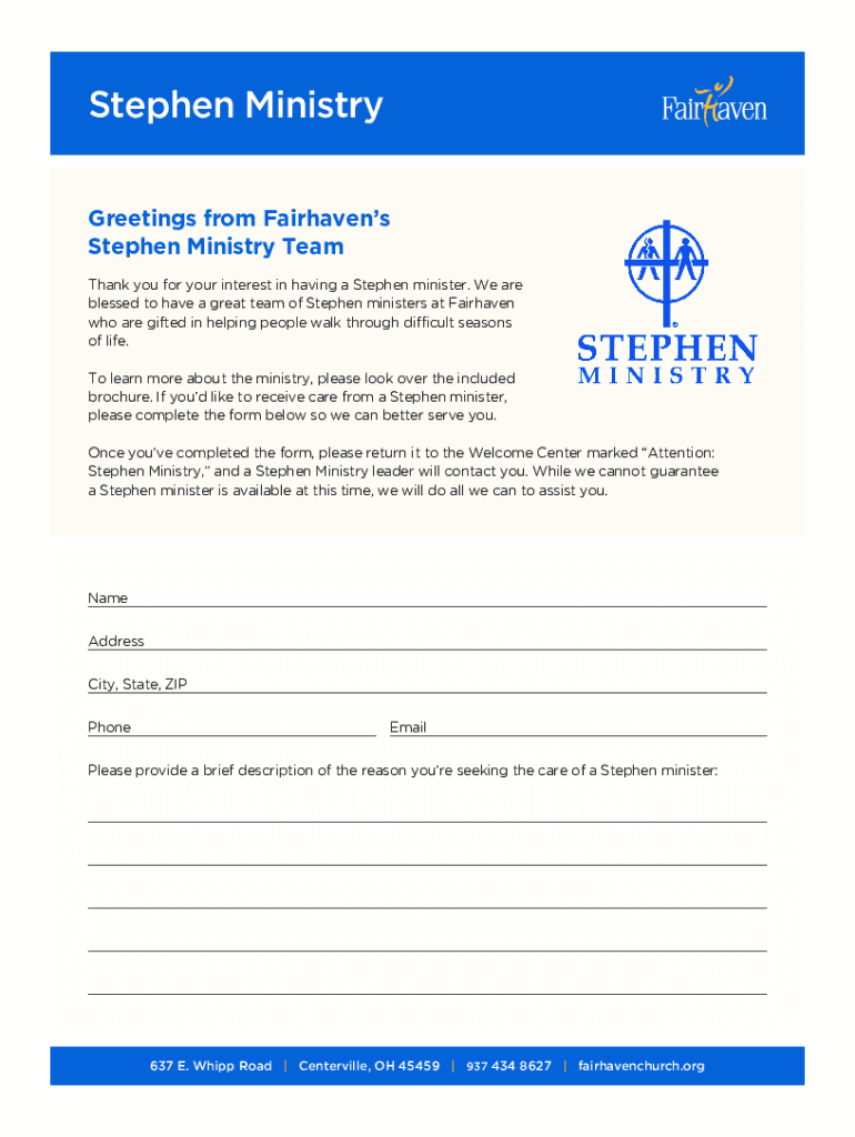 Stephen Ministry Greetings from Fair havens Stephen Ministry Team Thank you for your interest in having a Stephen minister. We are blessed to have a great team of Stephen ministers at Fair haven who