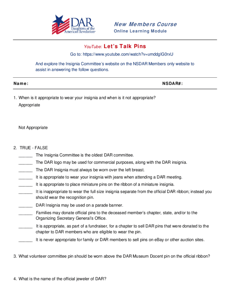 New Members Course Online Learning Module YouTube:Lets Talk Pins to: https://www.youtube.com/watch?vumddglG0rxU And explore the Insignia Committees website on the NSDAP Members only website to assist