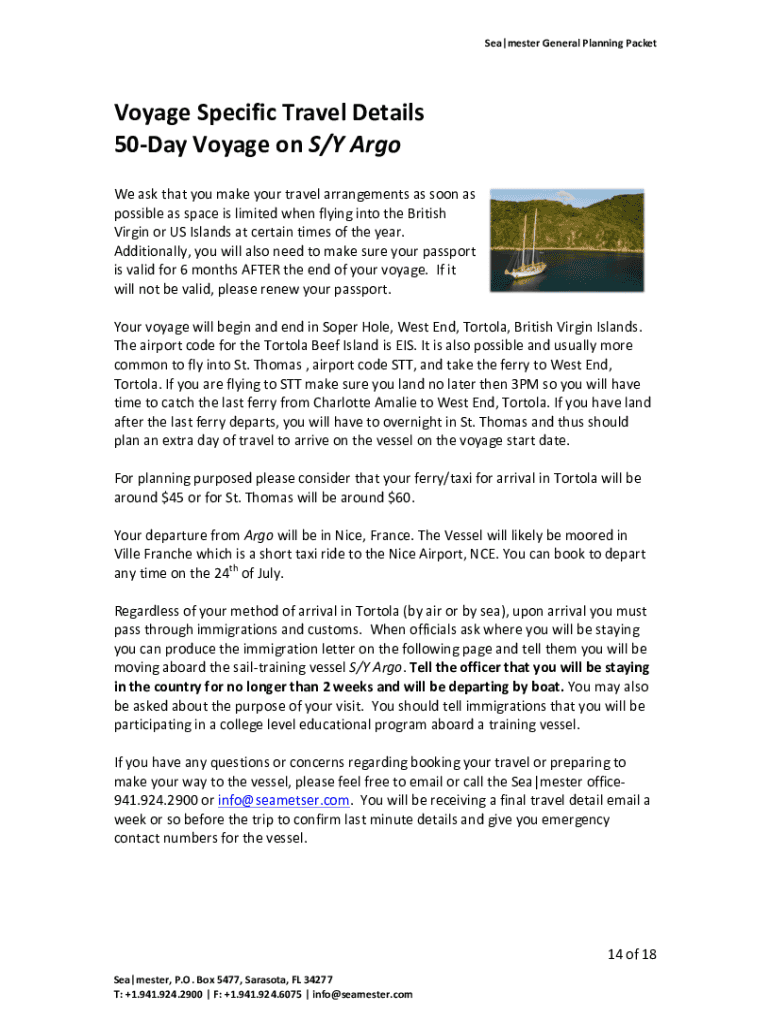 Get the free Voyage Specific Travel Details 50-Day Voyage on S/Y Argo