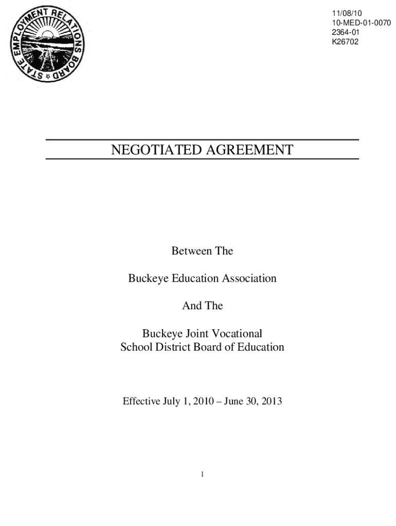 11/08/10 10MED010070 236401 K26702NEGOTIATED AGREEMENTBetween The Buckeye Education Association And The Buckeye Joint Vocational School District Board of EducationEffective July 1, 2010, June 30,